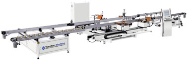 數控四頭組角生產線:全套施耐德數控系統;國內首創的高效四頭組角生產線設備,可實現窗體的自動輸入、定位、組角和自動輸出;創新的機頭結構設計,確保組角精度。