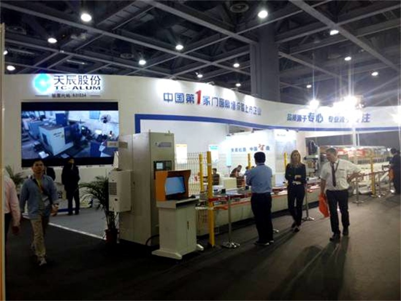????????? 2015年3月18日—20日,第21屆全國鋁門窗幕墻行業(yè)年會暨鋁門窗幕墻新產(chǎn)品博覽會在廣州保利世貿(mào)博覽館隆重舉行。濟南天辰鋁機股份有限公司攜最新產(chǎn)品亮相本屆展會,展位號:2號館2512。作為行業(yè)內(nèi)門窗幕墻加工設(shè)備領(lǐng)域的領(lǐng)軍企業(yè),天辰股份首次展示了新型高端數(shù)控雙料鋸切中心、五金鉸鏈自動生產(chǎn)線以及新型鋁門窗液壓重型組角機,成為了本屆展覽會的一個亮點,展會首天就得到了行業(yè)領(lǐng)導(dǎo)的肯定及廣大客商的好評!
