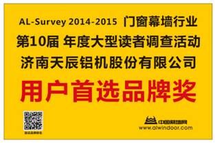 AL-Survey讀者調(diào)查活動(dòng)全稱:中國幕墻網(wǎng)年度大型讀者調(diào)查活動(dòng)暨“我最喜愛品牌”評(píng)選活動(dòng)。(以下簡稱AL-Survey)我司作為設(shè)備領(lǐng)域的領(lǐng)先企業(yè),自上界獲得用戶首選品牌及市場表現(xiàn)獎(jiǎng)之后,2015年再次憑借“天辰鋁機(jī)”品牌在市場中的優(yōu)異