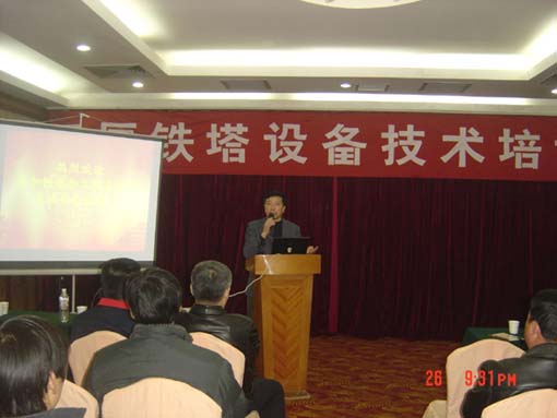 ??? 2009年12月19日到26日,“天辰鐵塔設備技術培訓班” 先后在河北廣川和山東膠州等地開講,天辰集團技術專家通過與客戶面對面的交流,把大至鐵塔行業的形勢和動態、小至鐵塔產品的操作方法和注意事項傾囊相授,共計83個廠家的171人參加